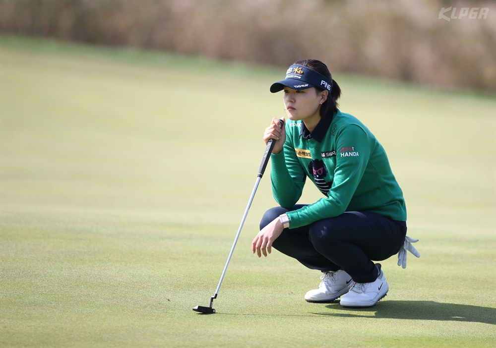 박성현이 14일 인천 스카이72 골프 앤 리조트 오션코스에서 열린 '2018 LPGA KEB하나은행 챔피언십' 최종라운드 경기 2번홀에서 그린을 살피고 있다./연합뉴스