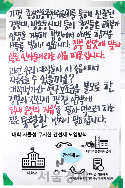 이 사건의 중심엔 대학의 자율성을 깡그리 무시한 채 간선제를 밀어붙이려 한 정부가 있다.