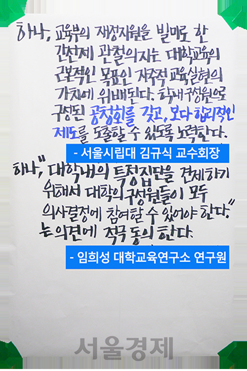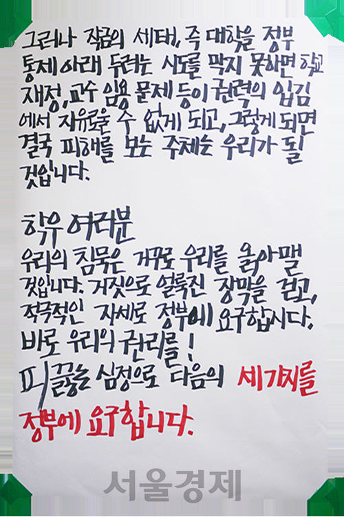 정부의 대학 통제 시도에 분연히 맞서 싸워야 한다. 투쟁! , 이종호·양아라·박송이 인턴기자
