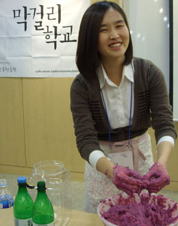 '내 생애 첫 술 빚기'와 '막걸리 양조장을 찾아서', '한국탁주와 일본탁주' 등의 프로그램으로 구성된 막걸리 학교는 주 1회 2시간씩 10회 강좌이며 수강료는 36만원이다. 지난해 10월 처음 문을 연 이래 얼마 전 수료한 3기까지 막걸리 학교를 거쳐간 사람은 120명. 1기 모집 당시부터 소문을 듣고 온 지원자들로 접수 이틀만에 마감된 데 이어 2기 모집에선 접수 시작 10분이 채 되지 않아 수강 인원이 다 찼다.