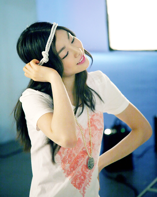 김연아가 청순한 포즈를 만들고 있다. 얼음 위에서 다양한 연기를 척척 선보이는 김연아도 패션 모델의 연기는 어려운 듯 몇 번의 실수를 거듭했다. 김연아는 "어휴~ 피겨 무대와 달리 감정을 잡기가 쉽지 않아요"라며 혀를 내밀었다.