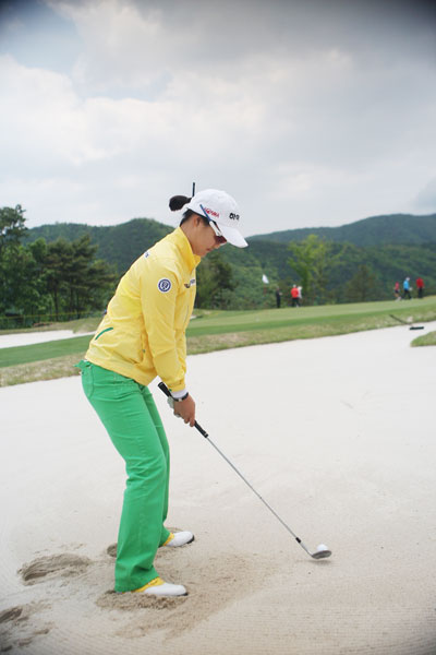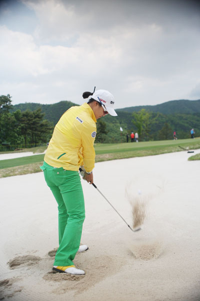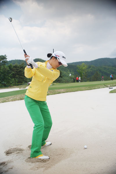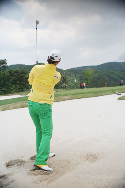 ◇강하게 휘둘러라= 충분히 강하게 휘두르는 것도 중요하다. 탈출이 가장 큰 목적인데 너무 약하게 쳐서 나오지 못하는 것은 어리석은 일이다. 임팩트 때 풀스윙과 마찬가지로 왼팔을 뻗어야 모래의 저항을 이겨내고 폴로스루까지 확실히 휘두를 수 있다.