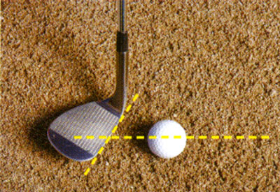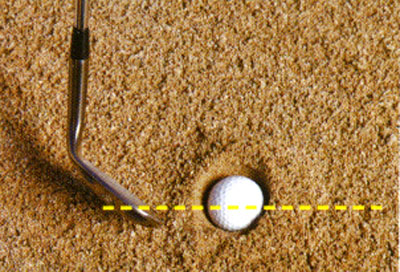이제 해야 할 일은 라이에 따라 페이스의 각도만 바꾸고 볼의 뒤쪽을 내려치는 것이다. 볼은 모래와 같은 방향으로 날아가고 모래는 페이스가 가리키는 방향이 아니라 스윙하는 방향으로 날아간다.