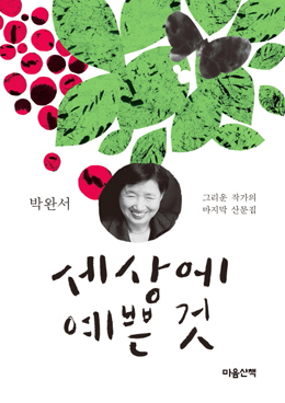 ◇세상에 예쁜 것(박완서 지음, 마음산책 펴냄)=지난해 타계한 소설가 박완서의 '진짜 마지막' 산문집. 작가의 딸인 호원숙씨가 어머니의 서랍에서 찾아낸 '어떤 산문집에도 들어가지 않은 글 묶음'이 세상에 나왔다. 법정스님과의 인연과 그 삶을 회고하는 내용부터 피천득ㆍ이병주ㆍ박경리ㆍ장영희 등 작고 문인에 대한 회고, 손자에게 보낸 편지 등에서 저자의 온기어린 마지막 목소리를 들을 수 있다. 1만2,800원