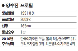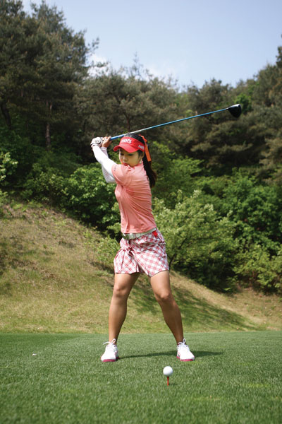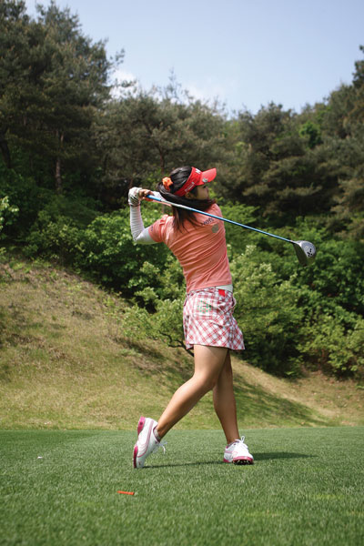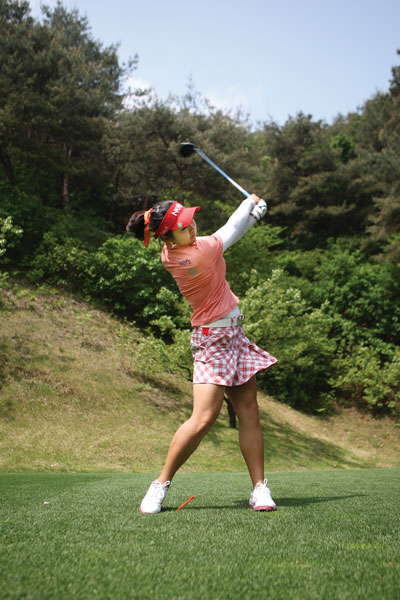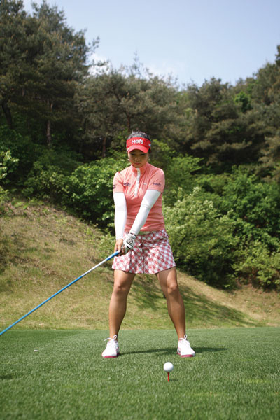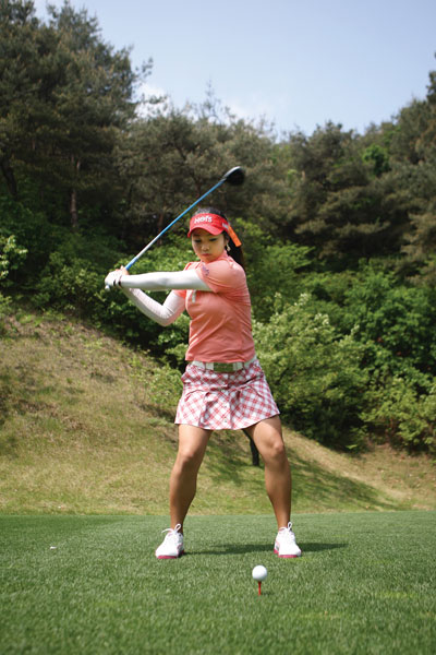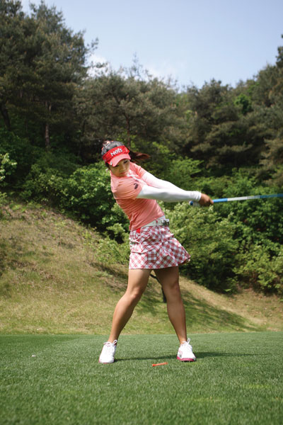 양수진은 파워를 최대한 발휘할 수 있는 준비자세와 스윙 메커니즘에 충실한 효율적 스윙을 구사하고 있다.