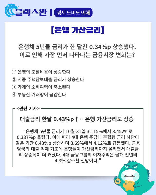 ▶ 기사 바로가기: 대출금리 한달 0.43%p↑…은행 가산금리도 상승